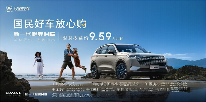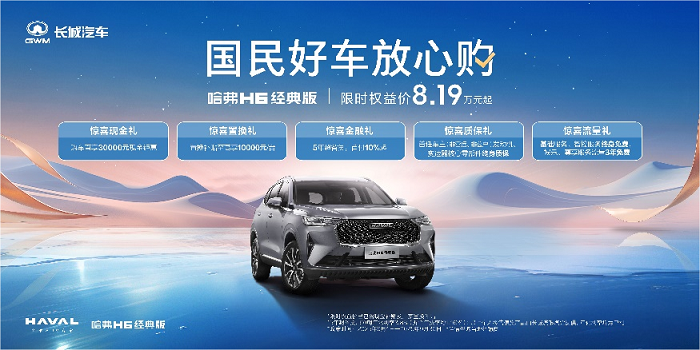 金秋时节遇惊喜,国民好车放心购。即日起至9月30日,哈弗H6携现金钜惠、置换补贴、超低首付、终身质保等诸多钜惠政策,打造限时权益价。其中,哈弗H6经典版限时权益价8.19万元起,新一代哈弗H6限时权益价9.59万元起。国民好车的品质口碑、叠加可享的优惠政策、实惠亲民的入手价格,将全面助力无忧旅程开启,让这个秋天更具幸福感。