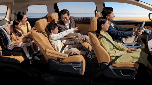 首先是舒适维度的“高价值”体验,E8突破了 “够用即可” 的惯性思维,通过更精细化设计,将舒适体验打磨至更高维度。二排双超级零重力座椅拥有同级中最全面的功能,靠背最大可调至168°,集成SPA级按摩、通风、加热功能,配合图书馆级静谧座舱,打造头等舱般的乘坐质感。低地台设计、儿童专用拉手、超宽中通道等人性化细节,更让老人、孩子上下车轻松自如,将乘坐舒适性推向极致。