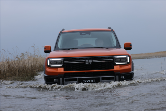 涉水环节更显硬核。当G700驶入600mm深的模拟河道,IP68级防水的发动机、电池与电机全程稳定输出,行业首创制动盘清洁功能自动激活,出水后制动力无丝毫衰减。从容的涉水表现,源自G700防水技术的突破性进阶,其首搭的2.0TD混动专用发动机通过五大防水技术升级,达到同级别第一的IP68级防水,在水中浸泡2小时后仍然可以正常启动,是国标要求浸水30分钟时长的四倍;整车涉水能力在空悬状态下达到970mm,达到路虎揽胜(涉水深度900mm)、路虎卫士OCTA(涉水深度1000mm)等百万豪车水平。