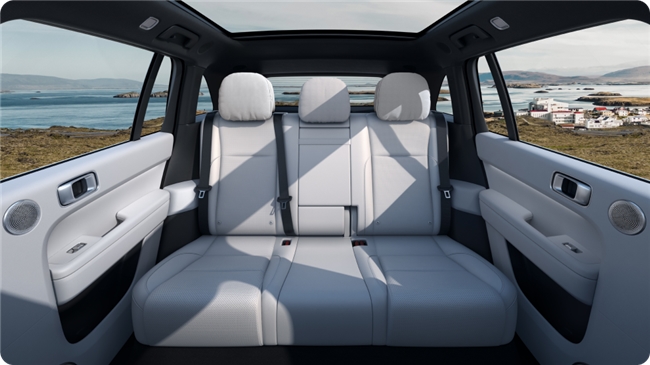 空间也是家庭用户的核心诉求之一,尤其是对于有孩子和老人的家庭,宽敞的乘坐空间和灵活的储物设计至关重要。星纪元ET以其“豪华全景大平层”的设计理念,打造出超越同级的车内空间。其车身尺寸为4955×1975×1698mm,轴距达到3000mm,舱内有效空间达3.45m³,营造出了宽敞舒适的乘坐空间。