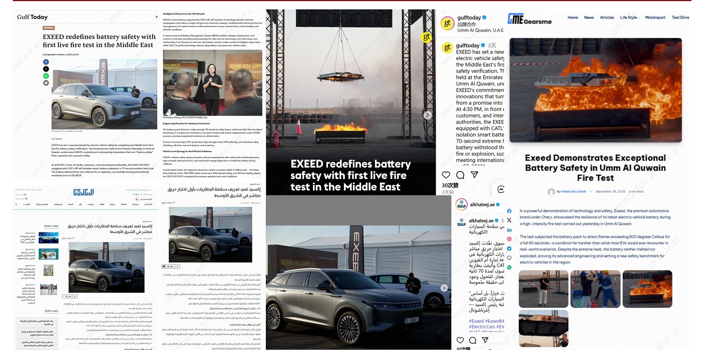 在中东炎热的沙漠气候中,高温是否会对电池安全造成影响,一向是中东消费者关注的重点。作为中东地区首次公开进行的电池火烧挑战,本次火烧测试在中东地区社媒引起广泛关注与讨论,观众普遍对实验过程的公开与真实性表示认可,以“安全”为核心,进一步强化星途汽车全球品牌标签。