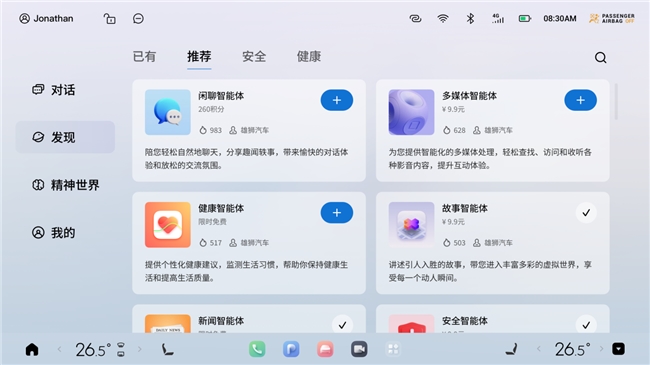 针对8295平台,星纪元ES还新增车外喊话功能,当车辆静止时,用户可通过中控屏幕或语音开启车外声音APP,根据场景对外播放感谢礼让、请您先行、借道提醒等语音提醒或趣味音效。如在驻车等人时,可通过“我在这里”的提示音,提醒要等待的人来车辆位置。