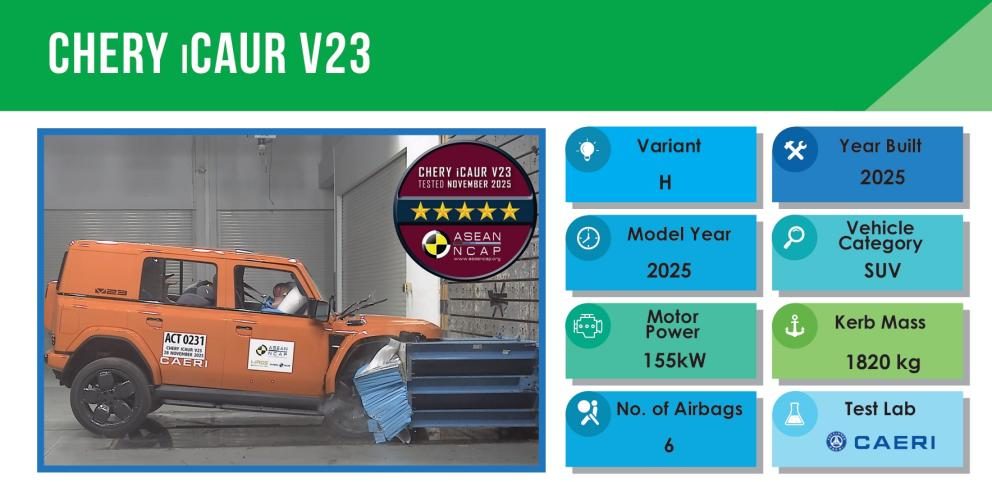 东盟新车安全评鉴协会(ASEAN NCAP)是东盟地区最权威的安全评测机构,覆盖东盟十国,其测试标准严格,涵盖车辆在正面碰撞、侧面碰撞、乘员保护、行人保护、安全辅助及具有“东盟特色”的摩托车安全等多个维度的全面评估。