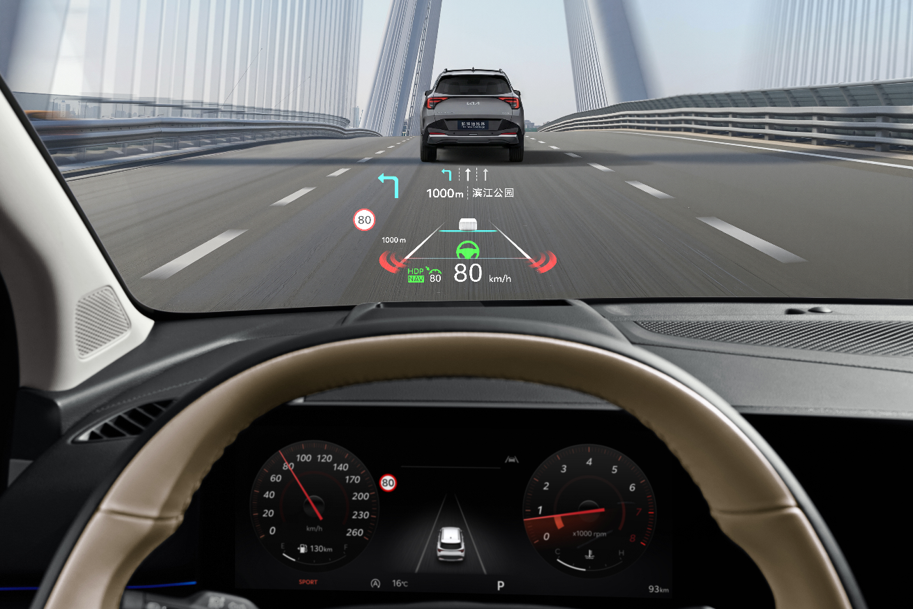 值得一提的是,起亚新狮铂拓界首次搭载11英寸HUD抬头显示系统,能有效减少驾驶视线转移,其最高亮度可达12,000尼特,即便在正午强光下依然可以清晰显示车速、道路标识和导航系统等关键驾驶信息,配合SVM全景显示与BVM侧后方影像,进一步扩大安全边界。新车还搭载起亚全新研发的智能IFS投射式大灯,照射范围更广、亮度更强,让用户夜间行车更安心。