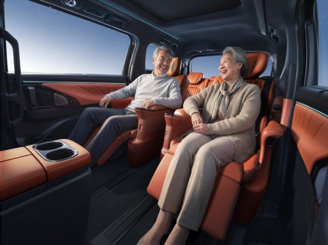 坐第二排的长辈,享受的是“头等舱”。全系标配10点按摩、通风加热,座椅电动调节带记忆,防夹保护也安排上了。腿托、靠背、头枕联动调节,按摩手法媲美专业SPA。电动长滑轨配上扶手屏控制,长辈进出方便,操作顺手。没有花哨炫技,就是让长辈坐得稳、坐得安心。