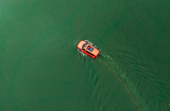 凭借纵横GAIA全领域智控系统,纵横G700至尊航行版尽显“逢山开路、遇水成舟”的硬核实力。方舟两栖全域密封系统以一体式结构+多道密封强化设计,实现关键系统IP68 级防护,渡江全程零渗漏;超级方舟800V高压碳化硅高转速推进器,系统释放强大推力,推动车辆在近2m/s的急流中平稳航行;超级方舟智航稳定系统3轴6自由度陀螺仪实时调整车身平衡,方舟精准操控系统确保水上轨迹精准可控,车辆全航速下姿态平稳,浮心与重心始终保持最佳动态,高效完成模拟水域救援、复杂水流定点抵达等实战科目。