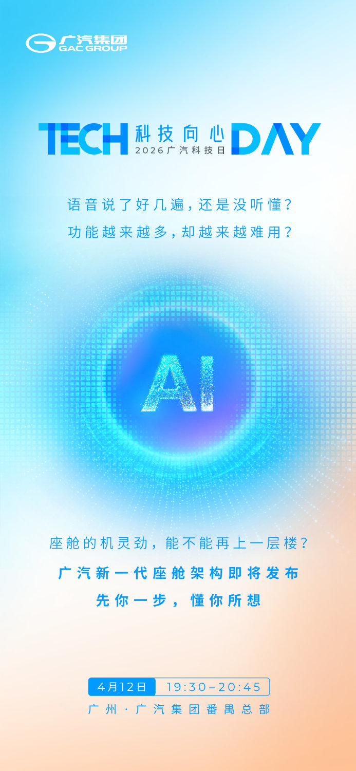 2026广汽科技日将于4月12日在广汽集团番禺总部举办。本届科技日以“科技向心”为主题,将发布新一代端云一体智能座舱架构、电子电气架构及芯片生态共建新成果。从技术基座到用户体验,广汽正以全栈自研突破,重新锚定智能汽车的价值坐标,为用户带来更贴心、更暖心的智能出行体验。
