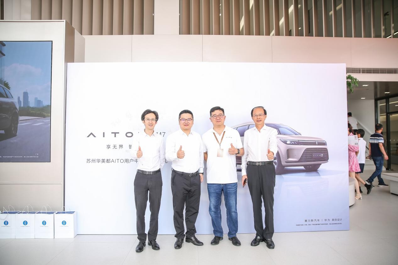 近日,苏州华美都AITO授权用户中心正式开业,赛力斯汽车CMO张正源、华成集团董事长蒋元生等领导出席开业仪式并为问界M7新车揭幕。现场,用户中心完成了30位车主的集中交付,各位车主和媒体、嘉宾们共同见证了AITO苏州用户中心的成立。
