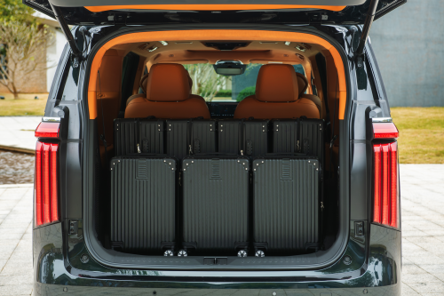 此外,高山MPV行政加长版的后备厢最大纵深长度则达到了1316mm,在全家人自驾出游的场景中,能够通过更大的后备箱空间,轻松装下大尺寸行李箱、渔具、雪具等装备,为全家人出游解锁更多新玩法。