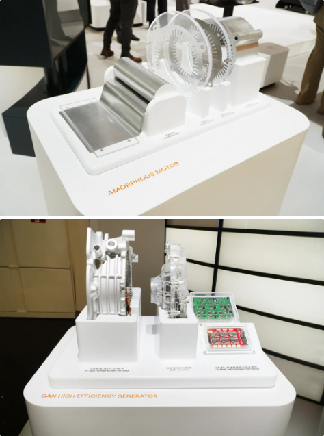 在前瞻动力技术领域,浩思动力带来的非晶电机采用0.025mm超薄非晶硅钢片材料,铁芯损耗降低50%以上,峰值效率达98.22%,计划2027年应用于下一代超级混动系统;氮化镓增程发电系统以"冰刃"功率模块为核心,通过创新设计实现系统体积和轴向长度双降20%,明年将向海外客户交付工程样机。