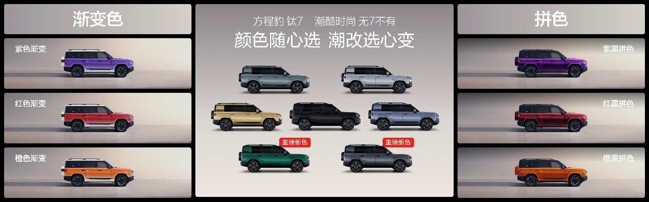 无论是电驱越野豹5、智能硬派豹8、还是科技潮品钛3亦或是科技大空间SUV钛7,方程豹不断开创不断引领,持续打造出了一款又一款开创性的爆款产品,把“个性”从“小众”变成“主流”,让“方盒子”开创下一代SUV的新形态,让美好生活不一样。