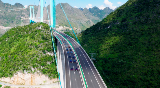 9月28日,横跨贵州省贞丰县与关岭县的世界第一高桥——贵州花江峡谷大桥正式通车,奇瑞汽车携旗下奇瑞、星途、捷途、iCAR四大品牌组成的30辆汽车方阵首航亮相,以一场别开生面的登高望远之旅致敬大国工程。