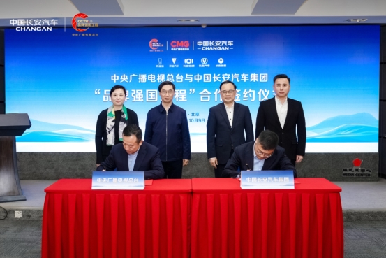 10月9日,中国长安汽车与中央广播电视总台举行合作签约仪式,正式加入中央广播电视总台“品牌强国工程”,携旗下阿维塔、深蓝汽车、长安启源等品牌成为“CCTV.央企智能出行战略合作伙伴”。签约墨迹未干,仅隔一日(10月11日),中国长安汽车集团与人民日报社举行合作签约仪式,成为“人民日报社品牌强国计划”成员单位。