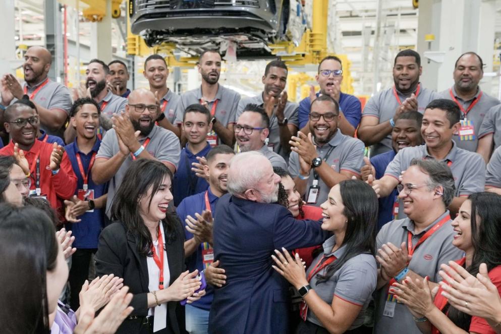 巴西巴伊亚州卡马萨里—10月9日,比亚迪第1400万辆新能源汽车在巴西乘用车工厂正式下线,标志着比亚迪全球化迈入全新阶段,也在南美大陆刻下了中国车企的新高度。巴西总统卢拉、副总统杰拉尔多·阿尔克明、中国驻巴西大使祝青桥、巴伊亚州州长热罗尼莫·罗德里格斯、比亚迪董事长兼总裁王传福等嘉宾,以及多位政府官员和比亚迪员工代表出席并见证了这一重要时刻。