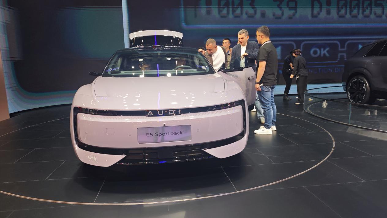 上汽奥迪展台被设计成一个充满科技感的银色空间,刚刚上市的奥迪 E5 Sportback 钦定性能quattro型占据C位。实车比图片更具张力,轿跑流线与瓦罐车身巧妙融合,独创的“星钻光幕”格栅在不同光线下呈现渐变效果。坐进驾驶舱,启动车辆的瞬间,BOSE音响传出的清澈人声与座椅恰到好处的包裹感,立刻让人感受到奥迪对豪华的理解不止于用料,更在于体验的细腻度。