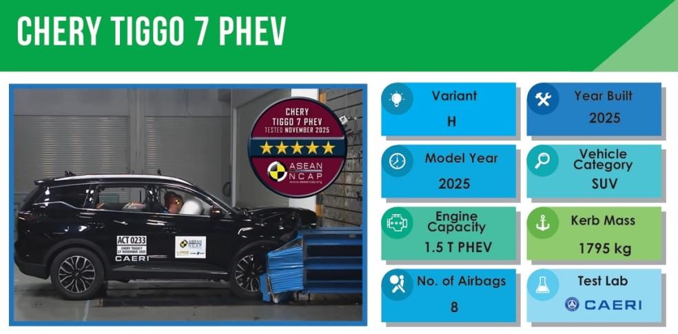 图为瑞虎7 PHEV获得东盟五星安全认证(ASEAN NCAP)