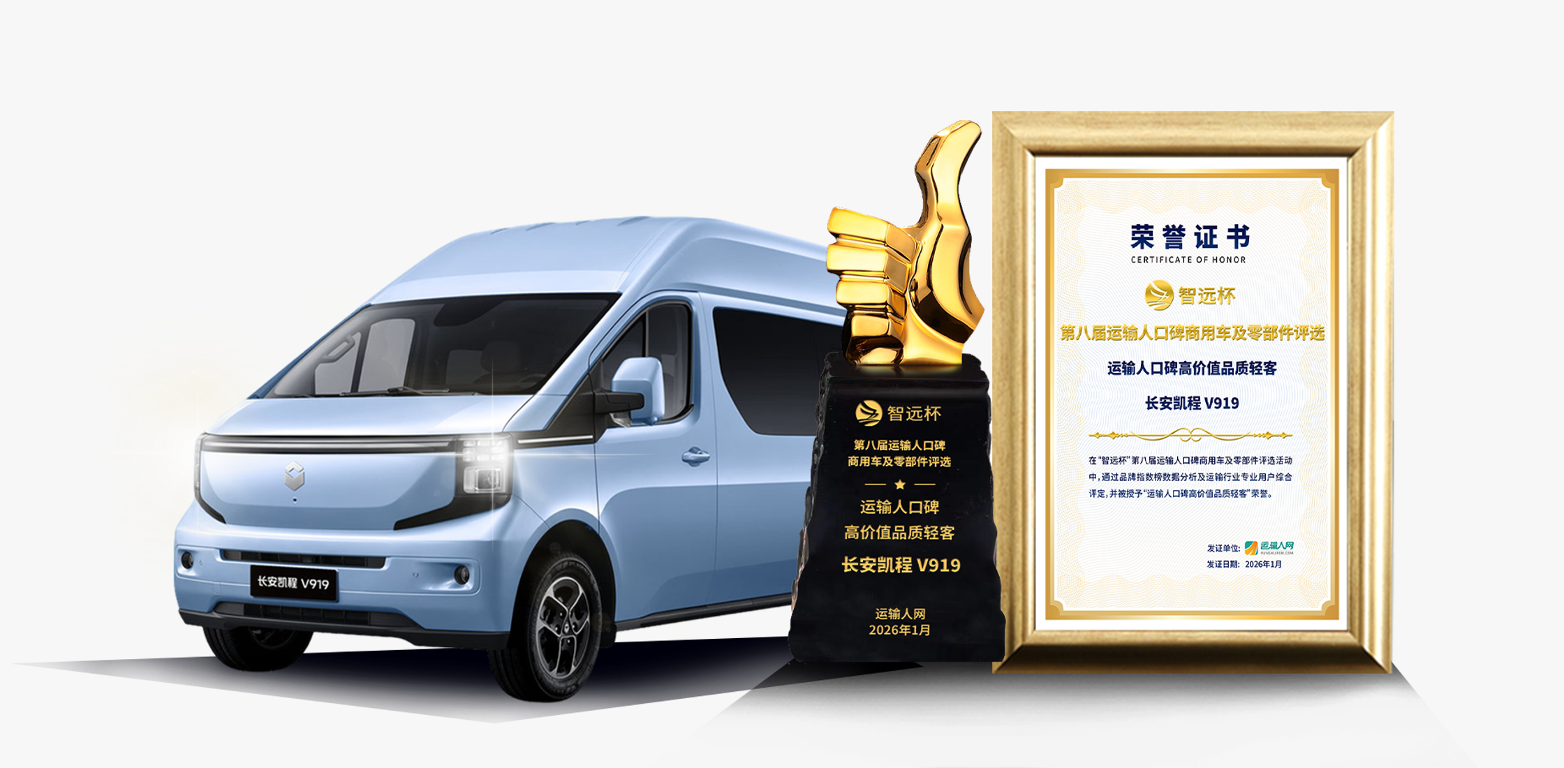 这一奖项的获得,标志着长安凯程V919在空间效率、能耗经济性及综合可靠性等维度,获得了来自市场一线用户的深度认可,其作为“明日数智轻客”的产品实力与价值标杆地位得到进一步夯实。