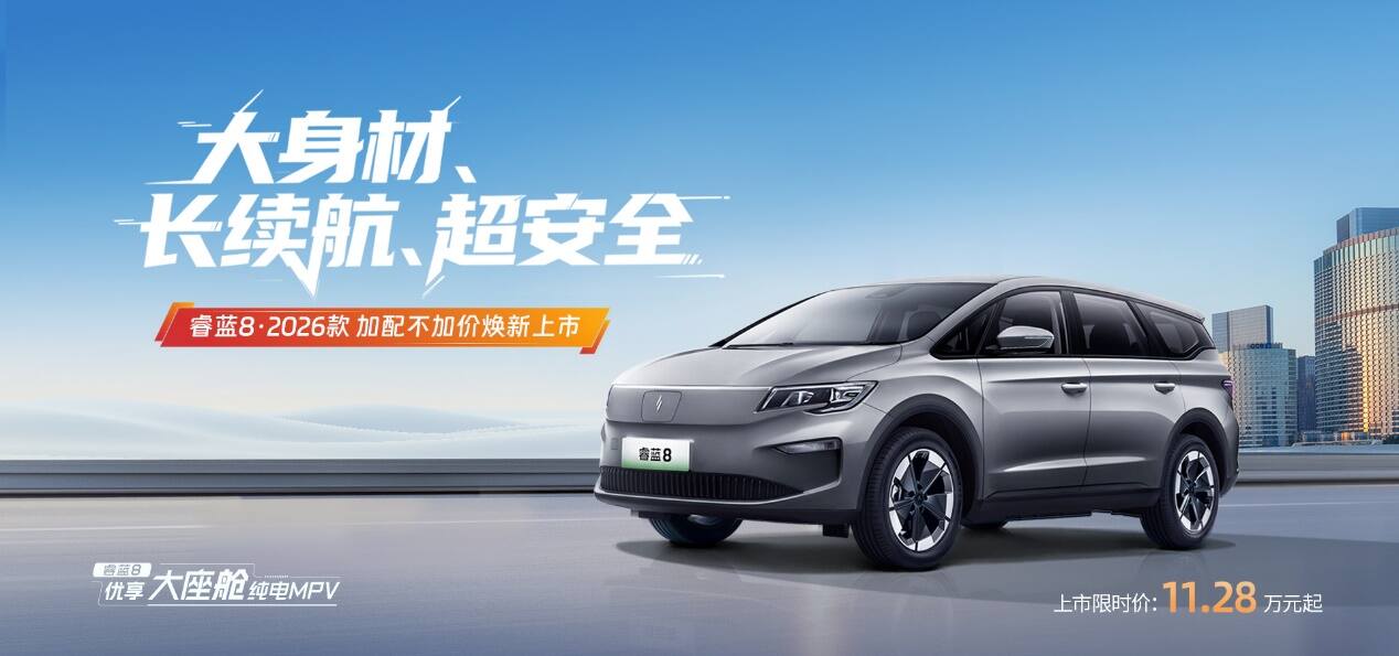 当理性消费成为主流,用户期待的从来不是降级满足,而是超值体验。睿蓝8·2026款以“加量不加价”的硬核实力,回应市场对“实用与体面兼得”的期待,成为10万级纯电MPV市场中不容错过的“闭眼之选”。