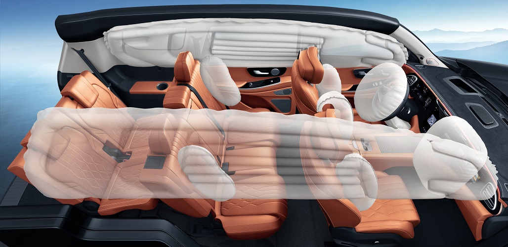 被动安全方面,其车身采用一体化笼式结构,高强度钢占比85%,关键部位应用了抗拉强度超过1500MPa的热成型钢,如同为家人构建了一个坚硬的“安全笼”。全车配备包含长达2.6米侧气帘在内的多方位安全气囊,其中侧气帘长度覆盖至第三排,为全舱乘员提供周全保护。