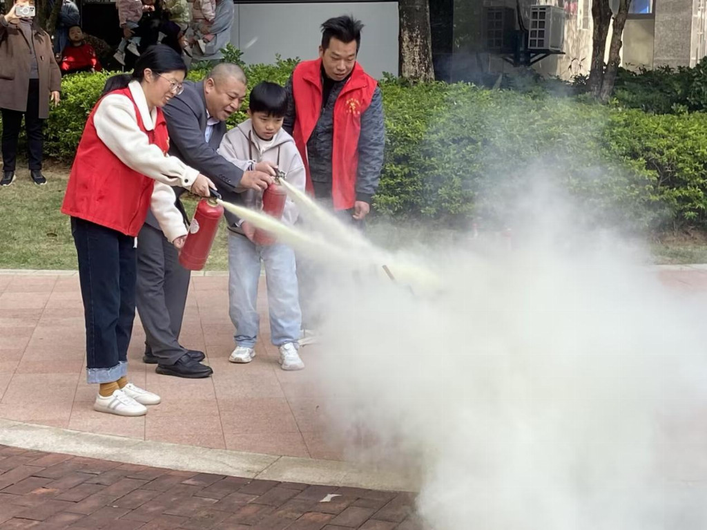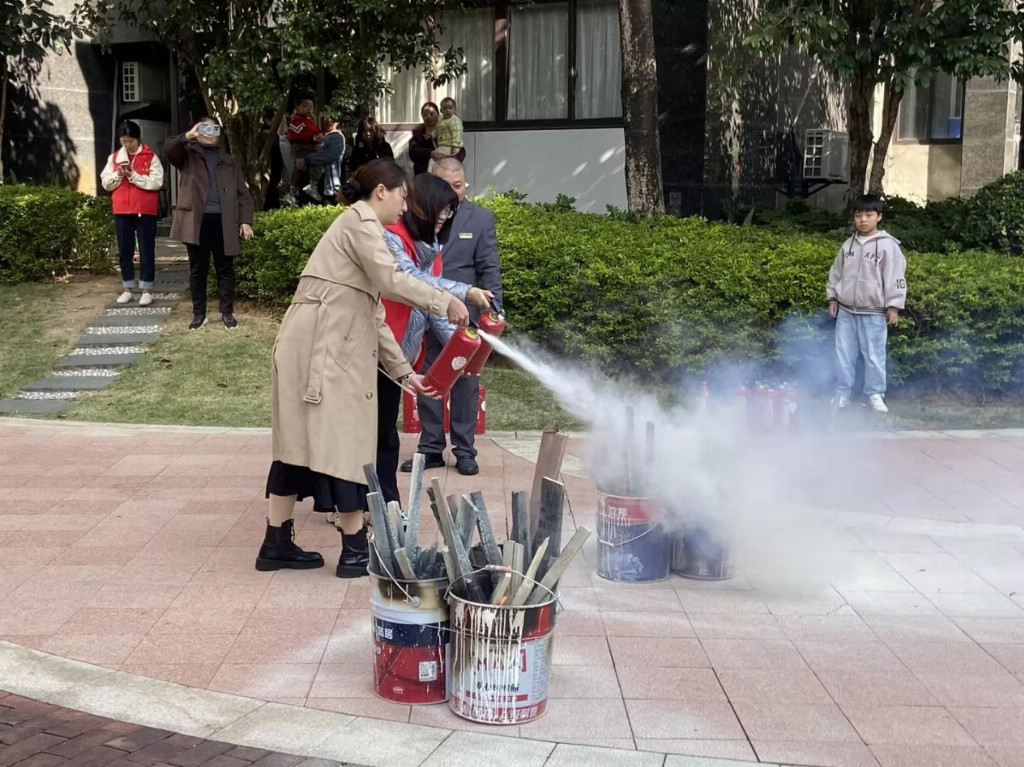 在灭火实操环节,物业工作人员现场示范了灭火器“提、拔、握、压”的使用步骤,并指导业主们分组进行实操演练。业主们热情高涨,纷纷拿起灭火器亲身参与,在工作人员的细致指导下,准确完成灭火操作,切实掌握了初期火灾的扑救技能。此外,演练还设置了消防栓操作演示、安全知识问答等互动环节,进一步巩固了大家的学习成果。